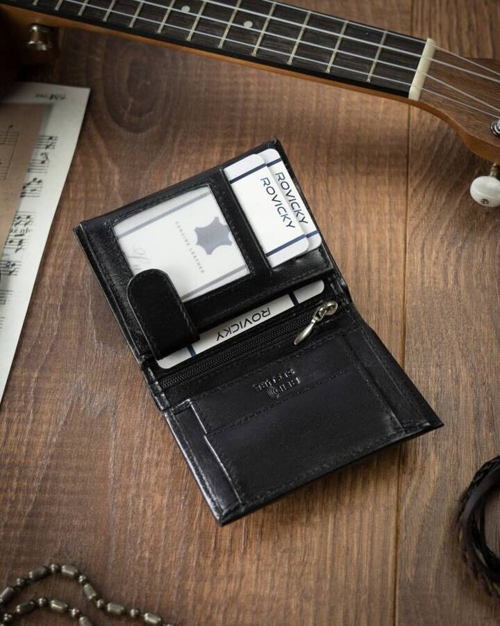 Odszyty z naturalnej skóry w czarnym kolorze. Portfel ma rozbudowane sekcje w bardzo intuicyjny sposób, organizacja wnętrza jest na najwyższym poziomie. Wyposażony w system RFID. Posiada 9 miejsc na karty i 4 przegródki na dokumenty.