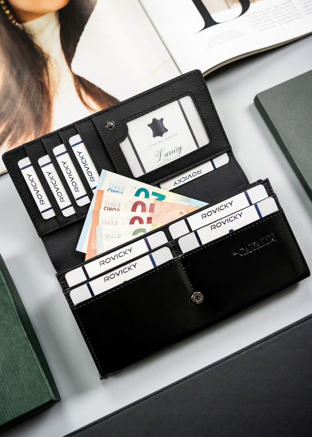 Portfel jest odszyty z najwyższej jakości skóry naturalnej i ekologicznej. Środek portfela jest wykończony skórą naturalną, zaś strona zewnętrzna to gładka skóra ekologiczna. Ten model zaprojektowano niezwykle intuicyjnie i funkcjonalnie.