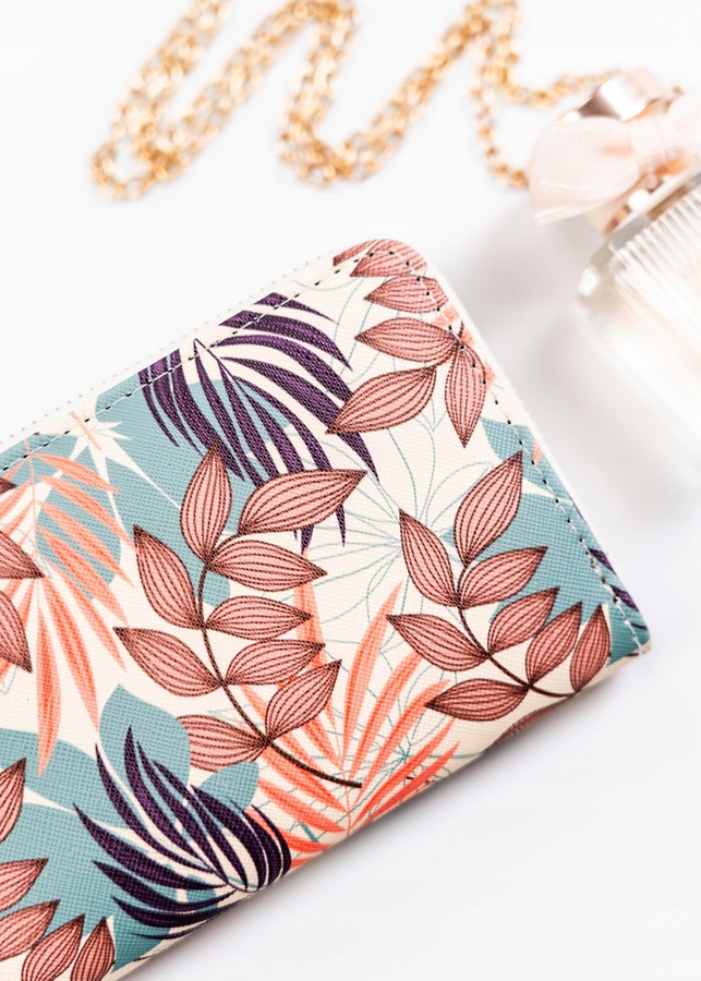 Portfel został wykonany ze skóry ekologicznej. Model z dużą ilością przegródek zaprojektowano niezwykle intuicyjnie i funkcjonalnie. Posiada śliczne, roślinne zdobienie. Portfel został wyposażony w wygodny zamek błyskawiczny.