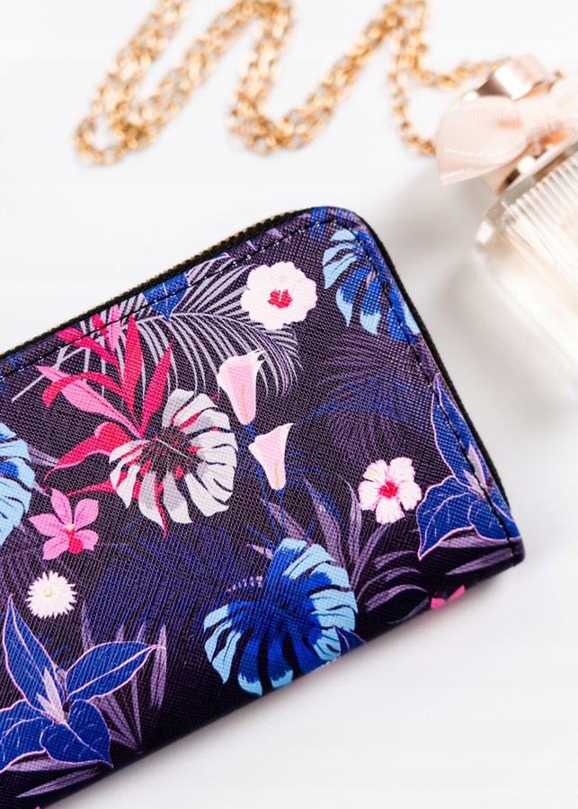 Portfel został wykonany ze skóry ekologicznej. Model z dużą ilością przegródek zaprojektowano niezwykle intuicyjnie i funkcjonalnie. Posiada śliczne, roślinne zdobienie. Portfel został wyposażony w wygodny zamek błyskawiczny.
