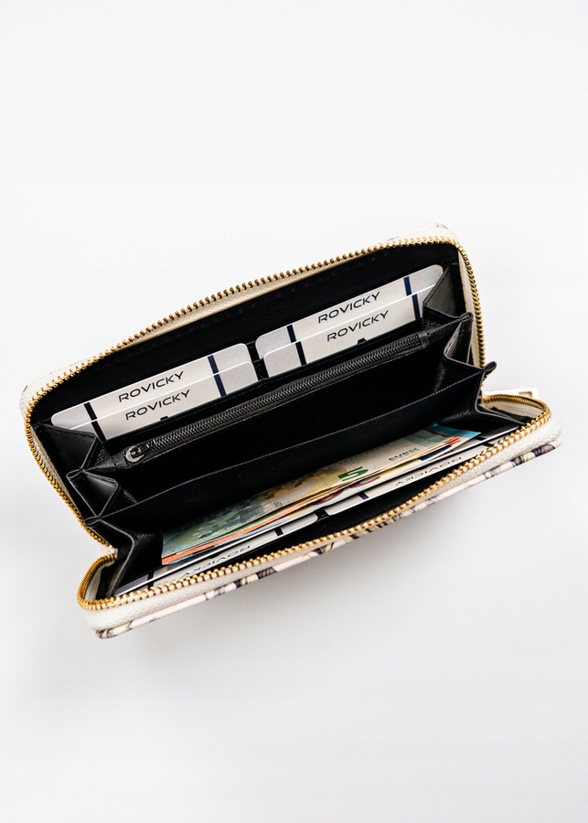 Portfel został wykonany ze skóry ekologicznej. Model z dużą ilością przegródek zaprojektowano niezwykle intuicyjnie i funkcjonalnie. Posiada śliczne, roślinne zdobienie. Portfel został wyposażony w wygodny zamek błyskawiczny.
