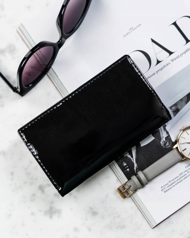 Uszyty z wysokogatunkowej skóry naturalnej z wierzchu pokrytej lakierem. Modny i wpisujący się w ponadczasowe trendy design. Model zaprojektowano niezwykle intuicyjnie i funkcjonalnie. Pomieścisz w nim pokaźne ilości kart, dokumentów oraz gotówki.