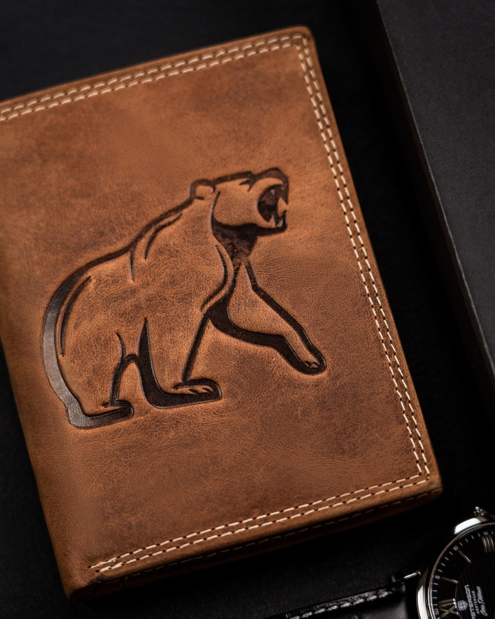 Portfel odszyty z trwałej nubukowej skóry naturalnej. Model o klasycznej stylistyce. Portfel w orientacji pionowej, bez zapięcia zewnętrznego. Posiada rozbudowane wnętrze. Wyposażony w technologię RFID BLOCKING SYSTEM.