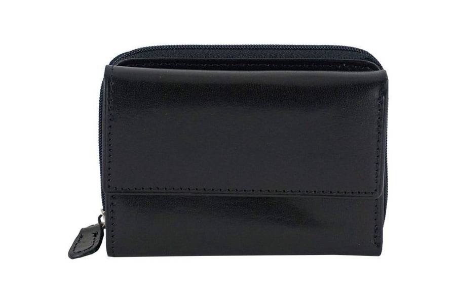 Wnętrze portfela: portfel skórzany damski podzielony jest na dwie części. Zasuwana część to trzykomorowa kieszeń mieszcząca monety oraz bilety. W drugiej części zapinanej na zatrzask mieszczą się banknoty, karty płatnicze lub wizytówki; w części tej uwzględniono również dwa miejsca na dokumenty lub fotografie. Portfel skórzany damski dzięki niewielkim rozmiarom mieści się w torebkach typu listonoszki oraz kopertówki.