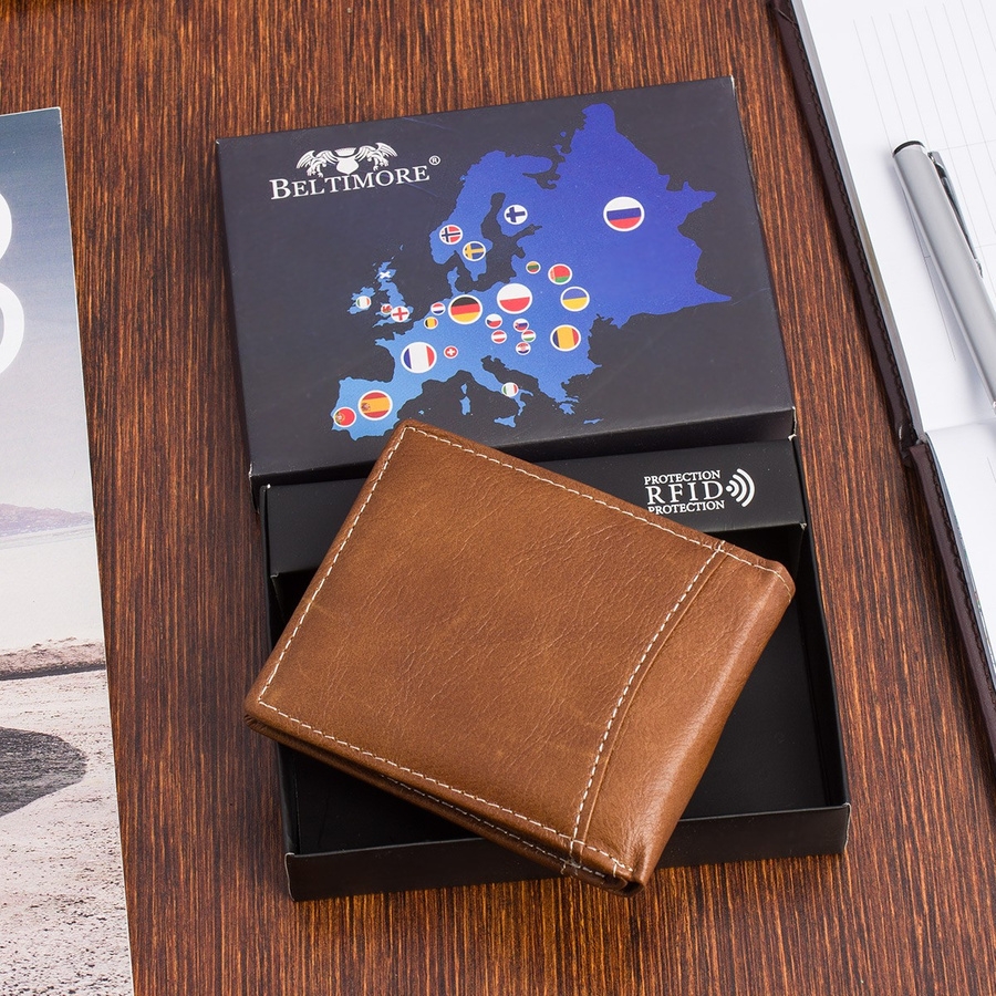 Portfel wykonany w całości ze skóry naturalnej, niewielkie rozmiary, sprawiają, że portfel nosi się wygodnie i przyjemnie. Idealny dla osób, które noszą niedużo w portfelu (np. dowód, prawo jazdy, 3 karty bankowe i karta fitness). Z tyłu wygodna przegroda na często używaną kartę