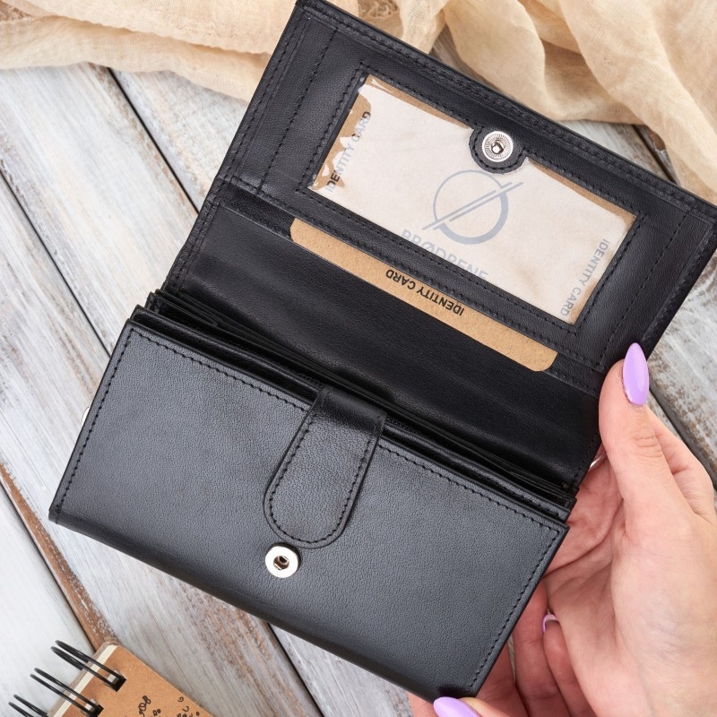 Portfel G-32 jest dedykowany kobietom, które na co dzień potrzebują sporo miejsca do przechowywania, szczególnie na karty kredytowe. Dzięki podwójnej napie na przodzie, zapniesz portfel nawet wtedy, gdy jest on wypełniony po brzegi! Co więcej, nie straci swojego kształtu… Wewnątrz znajduje się także podwójna komora na bilon (zapinana na suwak), dwie przegrody na gotówkę, schowek oraz półtransparentna kieszeń na zdjęcia bliskich Ci osób. Wewnątrz portfela znajdują się dwa schowki po długości oraz dwanaście przegródek na katy kredytowe.
