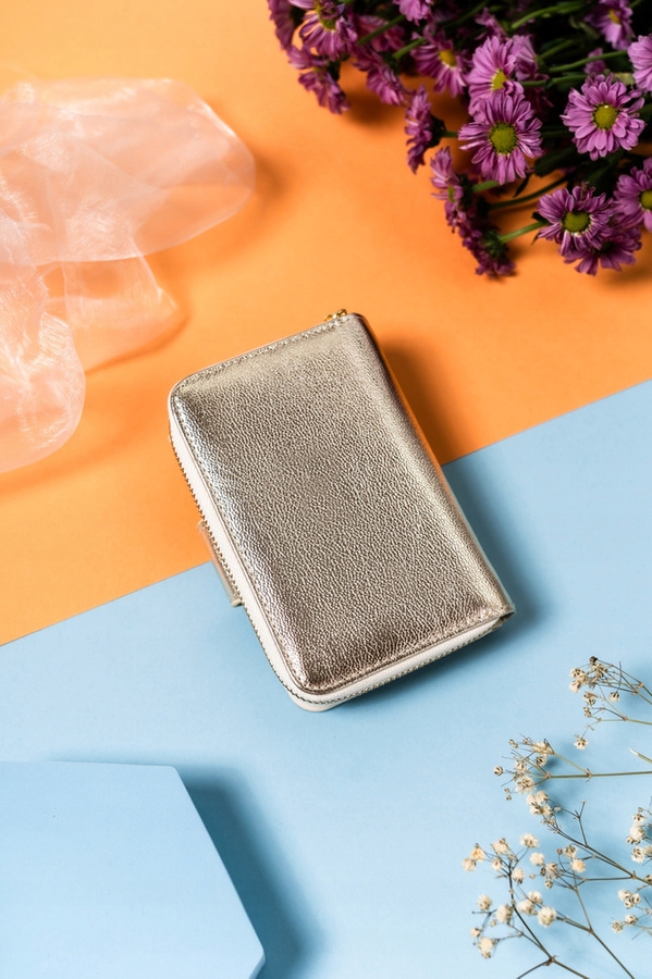Wykonany z wysokogatunkowej skóry naturalnej o brokatowej fakturze. Portfel pomieści pokaźne ilości kart, dokumentów oraz gotówki. Wyposażony w system RFID.