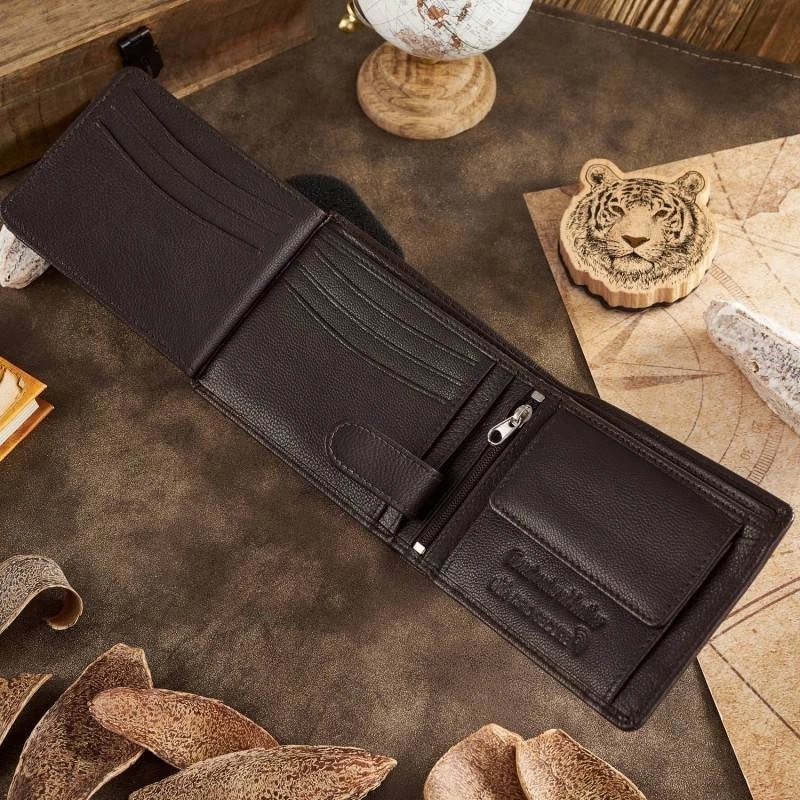 Portfel męski Paolo Peruzzi został wykonany z wysokiej jakości skóry naturalnej. Mimo niewielkich rozmiarów, model T-79-BR posiada pakowne wnętrze o funkcjonalnym rozkładzie. W otwieranej sekcji posiada on dziewięć przegródek na karty kredytowe, dwa transparentne schowki oraz trzy przegrody na paragony, legitymację lub dowód. Kieszeń na bilon zapinana jest na zatrzask, a pod nią znajduję się kolejny schowek. Portfel posiada dwie przegrody na banknoty oraz kieszeń na suwak na środku. Oprócz dużej ilości miejsc do przechowywania prezentowany model wyposażony jest w ochronną membranę RFID zapobiegająca przesyłowi fal radiowych.