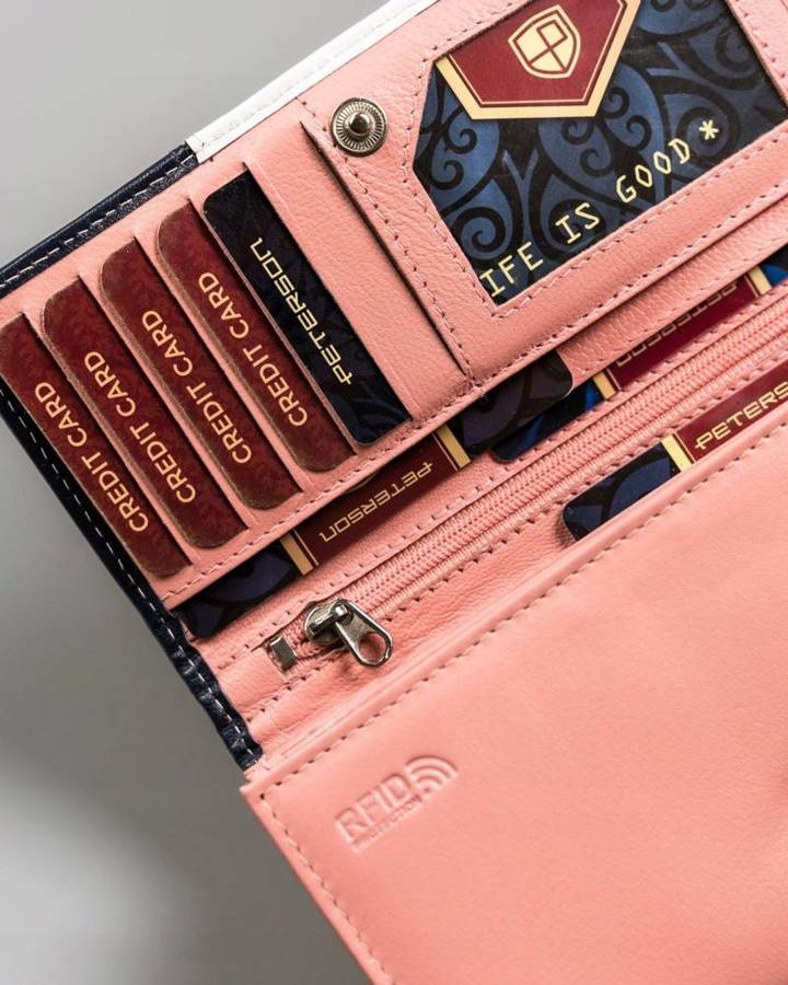 Uszyty z wysokogatunkowej skóry naturalnej cechującej się ponadprzeciętną trwałością. Portfel w ponadczasowym stylu z subtelnym logo na froncie. Posiada dużo praktycznych przegródek i kieszonek, dzięki czemu pomieści wszystkie karty i dokumenty.