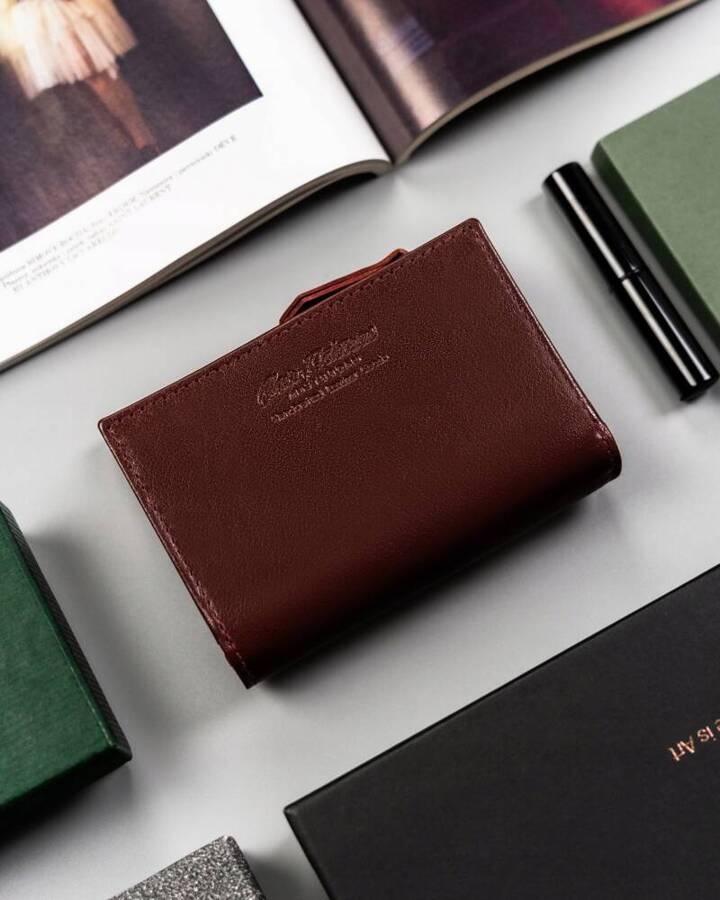 Odszyty bardzo trwale z doskonałej jakości skóry naturalnej o gładkiej fakturze. Portfel o ponadczasowej stylistyce. Model w orientacji poziomej zapinany na trwały i solidny zatrzask. Wyposażony w technologię RFID BLOCKING SYSTEM.
