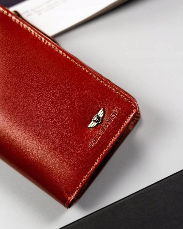 Odszyty bardzo trwale z doskonałej jakości skóry naturalnej o gładkiej fakturze. Portfel o klasycznej stylistyce. Model w orientacji pionowej, zapinany bezpiecznym i trwałym zatrzaskiem. Wyposażony w technologię RFID BLOCKING SYSTEM.
