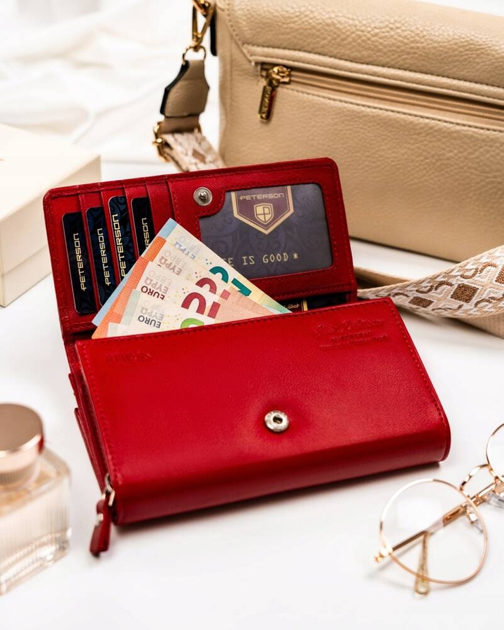 Odszyty bardzo trwale z doskonałej jakości wyselekcjonowanej skóry naturalnej. Portfel został zaprojektowany z myślą o posiadaczkach dużej ilości dokumentów. Wśród 16 kieszeni znajdują się 2 kieszenie, do których możesz włożyć fotografie swoich bliskich.