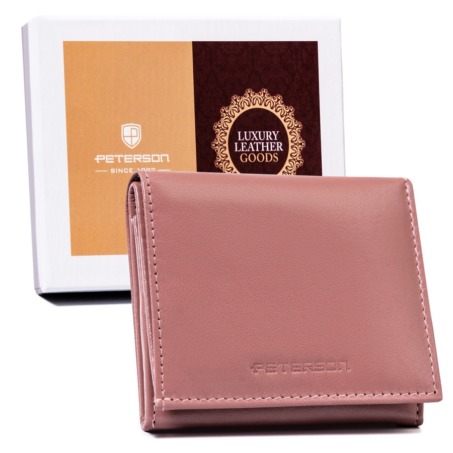 Prostokątny portfel damski z wysokojakościowej skóry naturalnej. Zamykany wygodnym zatrzaskiem. Wewnątrz sporo zakładek na karty. Portfel z kieszenią na banknoty i sekcją na bilon w formie piekiełka. Akcesorium z zabezpieczeniem RFID Protect.