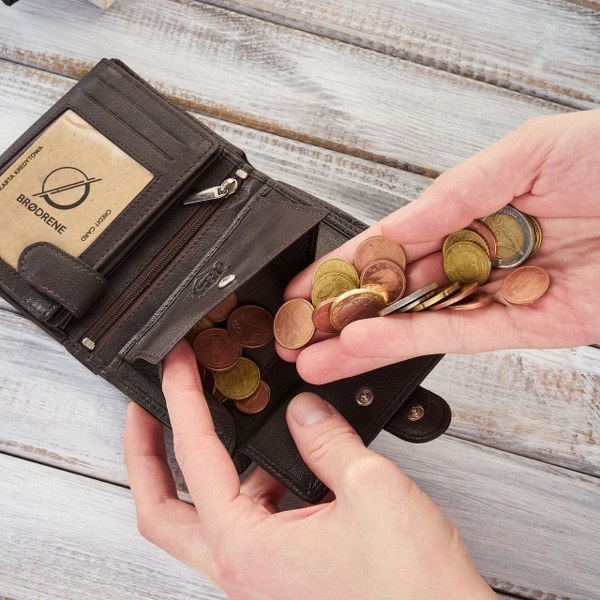 Elegancki portfel męski Brødrene G-28-MN z naturalnej skóry, wyposażony w ochronę RFID i liczne kieszenie na karty.