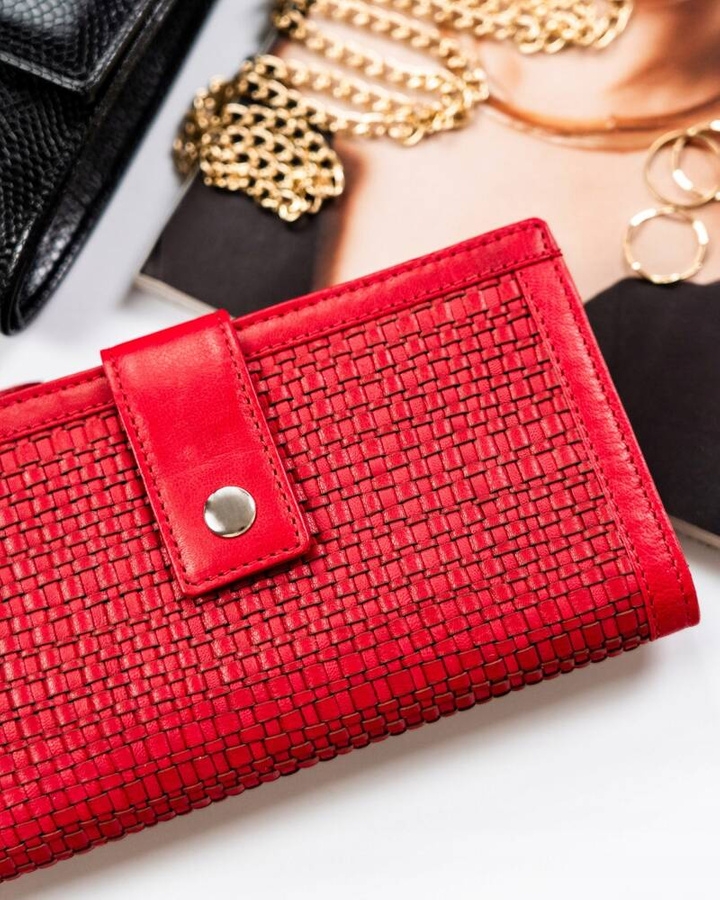 Odszyty bardzo trwale z doskonałej jakości przeplatanej skóry naturalnej, tworzącej subtelną kratkę. Portfel o oryginalnej stylistyce. Model w orientacji poziomej zapinany na trwały i solidny zatrzask. Wyposażony w system RFID.