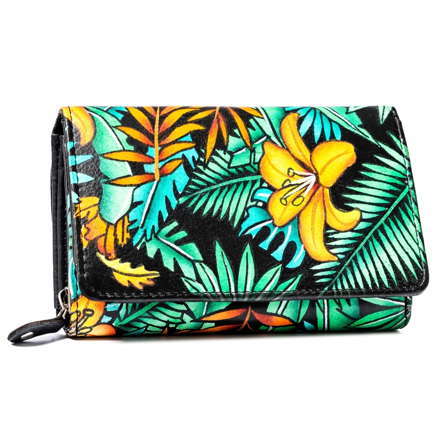 Portfel o klasycznym kształcie zamykanym na zatrzask w orientacji poziomej, wyróżniający się niebanalnym wzornictwem. Posiada liczne przegródki i kieszenie, rozmieszczone w zaplanowanym układzie, dzięki którym pomieścisz wszystkie potrzebne przedmioty.