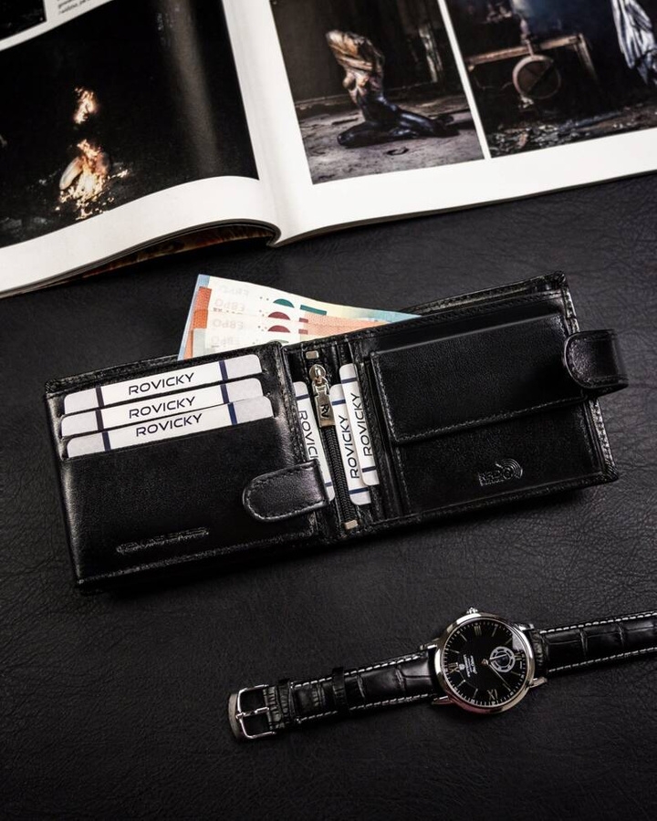 Odszyty bardzo trwale z naturalnej skóry bydlęcej, która lekko połyskuje. Portfel w orientacji poziomej. Model wyposażony w szereg praktycznych przegródek pozwoli Ci zmieścić wszystko, co najpotrzebniejsze. Wyposażony w technologie RFID STOP.
