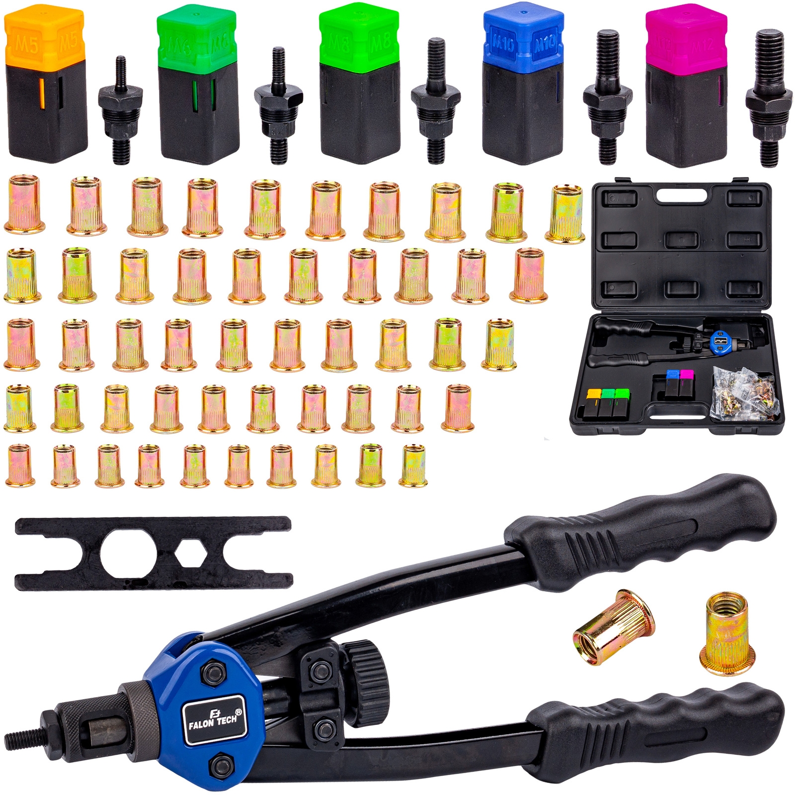 RĘCZNA NITOWNICA DŹWIGOWA DO NITONAKRĘTEK M5-M12 + 50 NITÓW FALON-TECH