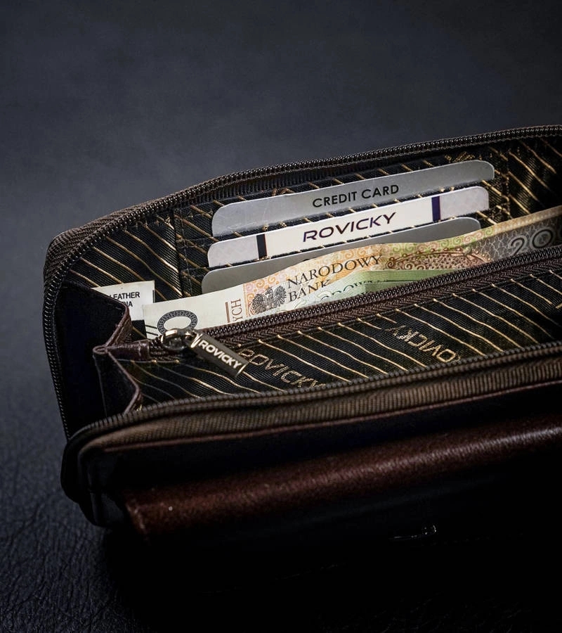 Skórzana saszetka na pasek z kieszenią na telefon oraz zakładkami na karty i wizytówki. Wyposażona w dwie przegródki na banknoty oraz zasuwaną kieszonkę na bilon. Akcesorium zabezpieczone systemem RFID Protect.