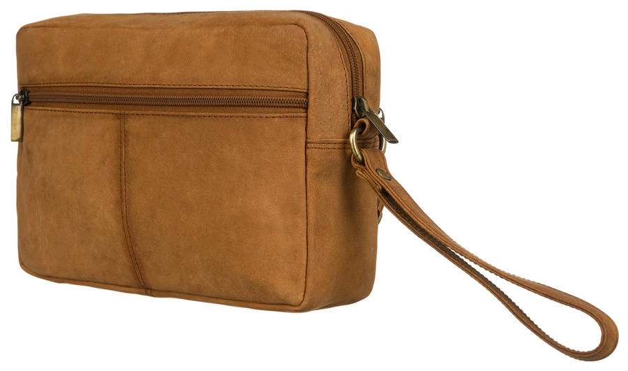 Poręczna saszetka ze skóry naturalnej. Jednokomorowa, zamykana solidnym suwakiem. Wyposażona w pięć zasuwanych kieszonek. Trzy z nich znajdują się na froncie, jedna na rewersie i jeszcze jedna wewnątrz saszetki. Całość wykończona podszewką.