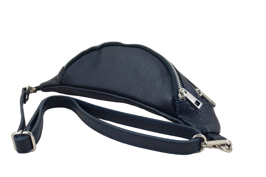 Funkcjonalna skórzana saszetka nerka w kolorze granatowym została wykonana ze skóry naturalnej licowej. W najnowszej ofercie niewielkich i modnych torebek skórzanych szczególne miejsce zajmują saszetki nerki - praktyczne, wygodne i niezwykle stylowe. To idealna propozycja dla kobiet ceniących połączenie funkcjonalności z elegancją. Dzięki uniwersalnej formie funkcjonalna skórzana saszetka nerka będzie idealna do noszenia w różnych okolicznościach - zarówno na co dzień, jak i na specjalne okazje. To niezbędny dodatek galanterii skórzanej w szafie kobiet śledzących najnowsze trendy oraz dbających o każdy szczegół stylizacji na spotkanie, spacer, zakupy lub krótki wyjazd. Oferujemy wyjątkowe i gustowne torebki skórzane - listonoszki, plecaki, klasyczne oraz worki wyróżniające się modnym fasonem, subtelnymi ozdobami oraz solidnym wykonaniem.