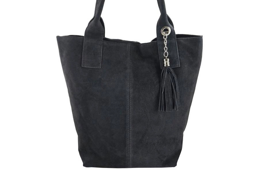 Shopper bag - torebka damska zamszowa została wykonana ze skóry naturalnej miękkiej. Propozycja sklepu internetowego - torebka, która uzupełni swobodne stylizacje do pracy. Miękka zamszowa skóra naturalna, wygodnej długości uchwyty, modny frędzelek - wszystko to gwarantuje, iż Twoja stylizacja będzie wyjątkowa. Shopper bag - torebka damska zamszowa wyróżnia się w kolekcji worków skórzanych pięknymi barwami i modnym fasonem. Skorzystaj z naszej oferty i odbierz rabat -15% za zapisanie się do newslettera.