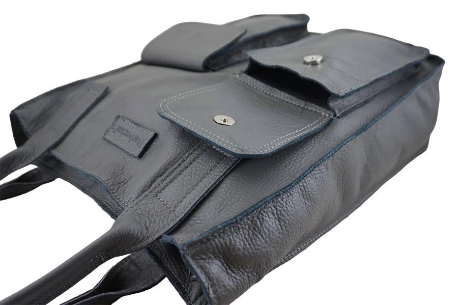 Torby shopper bag do pracy, w kolorze szarym ciemnym, zostały wykonane ze skóry naturalnej licowej. Oferujemy wygodne torby skórzane typu shopper bag mieszczące format A4. Z łatwością pomieszczą dokumenty, kalendarz oraz notes, a także niezbędne kobiece drobiazgi. Skórzane worki damskie są bardzo praktycznym dodatkiem. Są nie tylko bardzo pojemne, ale dzięki wewnętrznym i zewnętrznym małym kieszonkom, utrzymanie w nich porządku nie jest problemem. Dostępne w najnowszej kolekcji torby shopper bag do pracy wyróżniają przeszycia z przodu torebki, wygodnej długości uchwyty, a także dwie pojemne kieszenie. Wygodne torby shopper bag do pracy dostępne w wielu kolorach w kategorii WORKI.