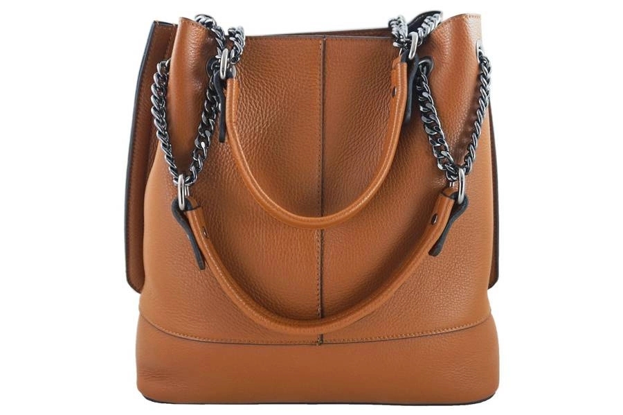 Modna torebka skórzana damska została wyprodukowana we Włoszech, wykonana ze skóry naturalnej licowej. Propozycja sklepu internetowego Barberini's w kategorii Torebki Klasyczne - modna torebka skórzana damska na wygodnej długości uchwytach wykonanych z połączenia skóry naturalnej oraz metalowych łańcuszków. Ofertę kierujemy do kobiet dbających o eleganckie stylizacje do pracy lub na spotkanie, poszukujących klasycznych dodatków codziennej garderoby.