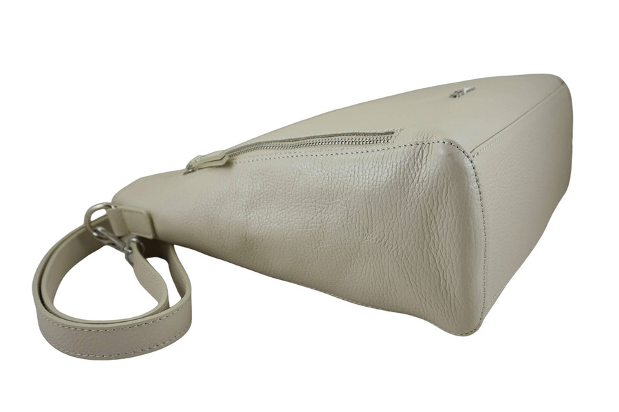 Praktyczna skórzana torebka na ramię w kolorze beżowym jasnym jest wykonana ze skóry naturalnej licowej. Szukasz wygodnej torebki mieszczącej niezbędne rzeczy do pracy, na uczelnię lub krótki wyjazd? Proponowaną w najnowszej kolekcji wygodnych i pojemnych torebek zaprojektowano tak, aby zmieściła dokumenty, notatki, portfel, telefon oraz kosmetyki. Poręczne wewnętrzne lub zewnętrzne kieszenie doskonale utrzymają porządek wewnątrz i z łatwością znajdziesz to czego szukasz - wszystko będzie na swoim miejscu. Praktyczna skórzana torebka na ramię na wygodnej długości regulowanym pasku to propozycja dla Pań ceniących gustowne dodatki codziennej swobodnej garderoby. Gwarantujemy zadowolenie z zakupionych produktów - najnowsze trendy, stonowane kolory oraz subtelne ozdoby przemawiają za wyborem torebki oraz portfela w naszym sklepie.