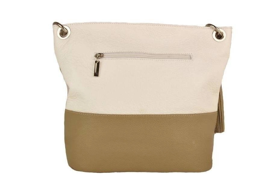 Wnętrze torebki: skórzane torebki włoskie wykończone są podszewką. Wewnątrz znajdują się dwie kieszenie - jedna zapinana na zamek oraz kieszeń na telefon. Na zewnątrz znajdują się dwie zasuwane kieszenie. Pasek torebek jest regulowany i umożliwia również noszenie na ramieniu.