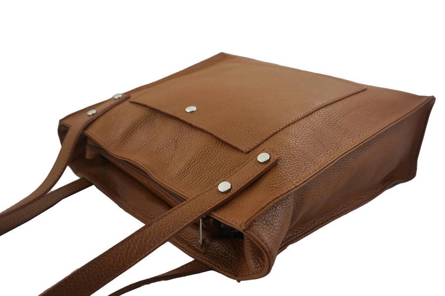 Torebka skórzana na ramię została wykonana ze skóry naturalnej. Propozycja sklepu internetowego w kategorii WORKI - torebka skórzana na ramię, mieszcząca format A4 z ozdobną kieszenią i srebrnym nitami. Pojemna torebka typu shopper mieszcząca najpotrzebniejsze codzienne przedmioty: dokumenty, portfel, organizer oraz telefon. Idealna do pracy lub na uczelnię, w stonowanych kolorach, podkreśli Twoją stylizację. Ofertę kierujemy do kobiet poszukujących klasycznych dodatków codziennej garderoby. Chcesz być na bieżąco z naszymi nowościami, promocjami oraz akcjami rabatowymi? Zapisz się do newslettera i odbierz rabat -15% na zakupy.
