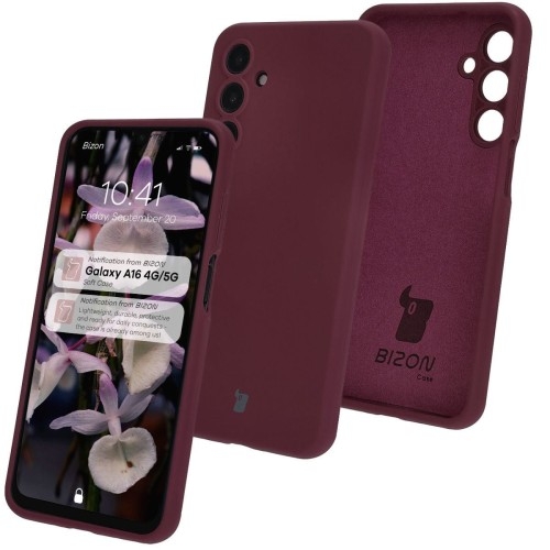 Silikonowe etui Bizon Soft CaseSamsung Galaxy A16 4GSamsung Galaxy A16 5G Miękka ochrona dla Samsung Galaxy A16 4G/5GŁadne czy mocne? Tym razem nie musisz wybierać!Silikonowe etui marki Bizon z serii Soft Case zostało stworzone z myślą o osobach ceniących sobie zarówno ochronę, jak i wygląd. Wyrazisty i mocny silikon ochroni Twojego smartfona przed zabrudzeniami, a poliwęglanowe wzmocnienie zminimalizuje czasem tragiczne skutki grawitacji.Wykonane z płynnego silikonuChroni przed zabrudzeniami oraz amortyzuje w razie wstrząsówPodwyższone krawędzieDedykowane wycięcia na obiektywyZintegrowane osłony na przyciskiKompatybilność z ładowaniem indukcyjnym - dotyczy modeli wyposażonych w tę funkcjęKolor producenta: Plum (śliwkowy)Etui kompatybilne ze szkłami* o wymiarach mniejszych niż (dług./szer.): 16,25 x 7,60 cm* Nie wiesz, jakie szkło będzie pasować? Wybierz Bizon Glass Clear!Przedmiotem sprzedaży jest samo etui, pozostałe akcesoria widoczne na zdjęciach służą jedynie przedstawieniu jego funkcjonalności. Solidna konstrukcjaBoisz się, że po założeniu etui, smartfon zacznie sam klikać, a kiedy Ty będziesz chciał zwiększyć głośność, to strzeli na Ciebie focha i zamiast tego się wyłączy? Tak jest tylko na filmach. A Bizon Soft Case, oprócz przemyślanej konstrukcji z połączenia płynnego silikonu i poliwęglanu, cechuje się utrzymaną płynnością działania przycisków, które dodatkowo są zabezpieczone zintegrowanymi osłonami! Podwyższone krawędzie i ukryta w środku etui mikrofibra dodatkowo zabezpieczą ekran i urządzenie w razie upadku.  Aparat w pełni bezpieczeństwaDedykowane wycięcia na obiektywy w połączeniu z podwyższonymi krawędziami dodatkowo zabezpieczą soczewki na płaskiej powierzchni, dzięki czemu Twój aparat będzie chroniony przed niechcianymi zarysowaniami! Kolor, który dobrze się nosiZa górami, za lasami, gdzieś na strychu, rzucone w kąt leży nie tak dawno kupione, wypłowiałe etui, które z niegdyś wyrazistym kolorem nie ma już nic wspólnego...To nie jest scenariusz dla Soft Case'a! Silikon, z którego został wykonany, zapewnia nie tylko zwiększoną odporność na odciski palców, ale także powierzchnię o gładkim i przyjemnym dotyku. Zastosowany materiał jest także niezwykle trwały i odporny na utratę koloru, a w razie ubrudzenia etui z łatwością je wyczyścisz, bez obaw o wyblaknięcie!Zdjęcie poglądowe, produkt może się różnić w zależności od modelu urządzenia Pełna funkcjonalnośćEtui jest idealnie dopasowane do telefonu, a niewielka grubość pozwala na indukcyjne ładowanie bez potrzeby ściągania obudowy (tylko jeśli Twój telefon potrafi się ładować bezprzewodowo). Pokrowiec posiada wszelkie niezbędne wycięcia, dzięki którym możesz cieszyć się pełnym dostępem do portów.