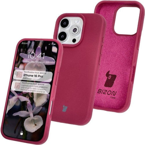 Silikonowe etui Bizon Soft Case Apple iPhone 16 Pro   Miękka ochrona dla Apple iPhone 16 Pro Ładne czy mocne? Tym razem nie musisz wybierać! Silikonowe etui marki Bizon z serii Soft Case zostało stworzone z myślą o osobach ceniących sobie zarówno ochronę, jak i wygląd. Wyrazisty i mocny silikon ochroni Twojego smartfona przed zabrudzeniami, a poliwęglanowe wzmocnienie zminimalizuje czasem tragiczne skutki grawitacji. Wykonane z płynnego silikonu Chroni przed zabrudzeniami oraz amortyzuje w razie wstrząsów Podwyższone krawędzie Pełne wycięcie na obiektywy Zintegrowane osłony na przyciski Kompatybilność z ładowaniem indukcyjnym - dotyczy modeli wyposażonych w tę funkcję Kolor producenta: Plum (śliwkowy) Etui kompatybilne ze szkłami* o wymiarach mniejszych niż (dług./szer.): 14,81 x 6,97 cm * Nie wiesz, jakie szkło będzie pasować? Wybierz Bizon Glass Clear! Przedmiotem sprzedaży jest samo etui, pozostałe akcesoria widoczne na zdjęciach służą jedynie przedstawieniu jego funkcjonalności.   Solidna konstrukcja Boisz się, że po założeniu etui, smartfon zacznie sam klikać, a kiedy Ty będziesz chciał zwiększyć głośność, to strzeli na Ciebie focha i zamiast tego się wyłączy? Tak jest tylko na filmach. A Bizon Soft Case, oprócz przemyślanej konstrukcji z połączenia płynnego silikonu i poliwęglanu, cechuje się utrzymaną płynnością działania przycisków, które dodatkowo są zabezpieczone zintegrowanymi osłonami! Podwyższone krawędzie i ukryta w środku etui mikrofibra dodatkowo zabezpieczą ekran i urządzenie w razie upadku.   Aparat w pełni bezpieczeństwa Pełne wycięcie na obiektywy w połączeniu z podwyższonymi krawędziami dodatkowo zabezpieczy soczewki na płaskiej powierzchni, dzięki czemu Twój aparat będzie chroniony przed niechcianymi zarysowaniami! Takie rozwiązanie nie koliduje z osobną ochroną aparatu, dzięki czemu możesz wyposażyć swoje urządzenie w dodatkową nakładkę!   Kolor, który dobrze się nosi Za górami, za lasami, gdzieś na strychu, rzucone w kąt leży nie tak dawno kupione, wypłowiałe etui, które z niegdyś wyrazistym kolorem nie ma już nic wspólnego... To nie jest scenariusz dla Soft Case'a! Silikon, z którego został wykonany, zapewnia nie tylko zwiększoną odporność na odciski palców, ale także powierzchnię o gładkim i przyjemnym dotyku. Zastosowany materiał jest także niezwykle trwały i odporny na utratę koloru, a w razie ubrudzenia etui z łatwością je wyczyścisz, bez obaw o wyblaknięcie! Zdjęcie poglądowe, produkt może się różnić w zależności od modelu urządzenia   Pełna funkcjonalność Etui jest idealnie dopasowane do telefonu, a niewielka grubość pozwala na indukcyjne ładowanie bez potrzeby ściągania obudowy (tylko jeśli Twój telefon potrafi się ładować bezprzewodowo). Pokrowiec posiada wszelkie niezbędne wycięcia, dzięki którym możesz cieszyć się pełnym dostępem do portów.
