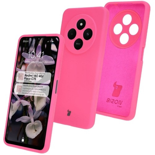 Silikonowe etui Bizon Soft CaseXiaomi Redmi 14C 4GXiaomi Poco C75 Miękka ochrona dla Xiaomi Redmi 14C 4G / Poco C75Ładne czy mocne? Tym razem nie musisz wybierać!Silikonowe etui marki Bizon z serii Soft Case zostało stworzone z myślą o osobach ceniących sobie zarówno ochronę, jak i wygląd. Wyrazisty i mocny silikon ochroni Twojego smartfona przed zabrudzeniami, a poliwęglanowe wzmocnienie zminimalizuje czasem tragiczne skutki grawitacji.Wykonane z płynnego silikonuChroni przed zabrudzeniami oraz amortyzuje w razie wstrząsówPodwyższone krawędzieDedykowane wycięcia na obiektywyZintegrowane osłony na przyciskiKompatybilność z ładowaniem indukcyjnym - dotyczy modeli wyposażonych w tę funkcjęKolor producenta: Neon Pink (neonowo-różowy)Etui kompatybilne ze szkłami* o wymiarach mniejszych niż (dług./szer.): 16,90 x 7,50 cm* Nie wiesz, jakie szkło będzie pasować? Wybierz Bizon Glass Clear!Przedmiotem sprzedaży jest samo etui, pozostałe akcesoria widoczne na zdjęciach służą jedynie przedstawieniu jego funkcjonalności. Solidna konstrukcjaBoisz się, że po założeniu etui, smartfon zacznie sam klikać, a kiedy Ty będziesz chciał zwiększyć głośność, to strzeli na Ciebie focha i zamiast tego się wyłączy? Tak jest tylko na filmach. A Bizon Soft Case, oprócz przemyślanej konstrukcji z połączenia płynnego silikonu i poliwęglanu, cechuje się utrzymaną płynnością działania przycisków, które dodatkowo są zabezpieczone zintegrowanymi osłonami! Podwyższone krawędzie i ukryta w środku etui mikrofibra dodatkowo zabezpieczą ekran i urządzenie w razie upadku. Aparat w pełni bezpieczeństwaDedykowane wycięcia na obiektywy w połączeniu z podwyższonymi krawędziami dodatkowo zabezpieczą soczewki na płaskiej powierzchni, dzięki czemu Twój aparat będzie chroniony przed niechcianymi zarysowaniami! Kolor, który dobrze się nosiZa górami, za lasami, gdzieś na strychu, rzucone w kąt leży nie tak dawno kupione, wypłowiałe etui, które z niegdyś wyrazistym kolorem nie ma już nic wspólnego...To nie jest scenariusz dla Soft Case'a! Silikon, z którego został wykonany, zapewnia nie tylko zwiększoną odporność na odciski palców, ale także powierzchnię o gładkim i przyjemnym dotyku. Zastosowany materiał jest także niezwykle trwały i odporny na utratę koloru, a w razie ubrudzenia etui z łatwością je wyczyścisz, bez obaw o wyblaknięcie!Zdjęcie poglądowe, produkt może się różnić w zależności od modelu urządzenia Pełna funkcjonalnośćEtui jest idealnie dopasowane do telefonu, a niewielka grubość pozwala na indukcyjne ładowanie bez potrzeby ściągania obudowy (tylko jeśli Twój telefon potrafi się ładować bezprzewodowo). Pokrowiec posiada wszelkie niezbędne wycięcia, dzięki którym możesz cieszyć się pełnym dostępem do portów.
