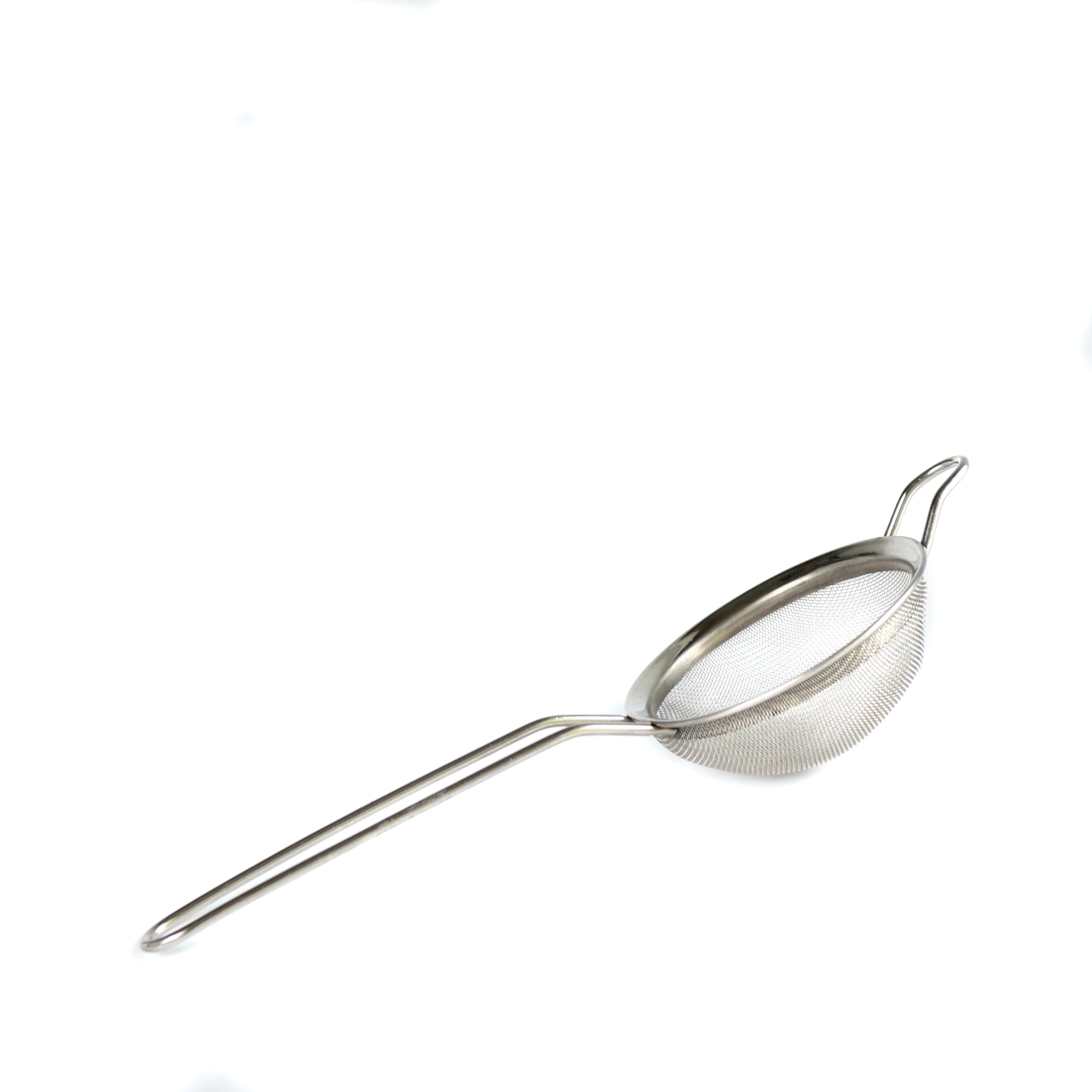 Sitko barmańskie mesh strainer - niezbędne w domowym barze Po sitko barmańskie mesh strainer sięgamy robiąc drinki ze świeżymi owocami i ziołami. Dzięki niemu uzyskasz klarowny drink, który cieszy nie tylko smakiem, ale również estetycznym wyglądem bez "fusów" z owoców czy fragmentów ziół.   Sitko mesh strainer - jak działa? Podczas przelewania drinka z shakera do kieliszka lub szklanki korzystamy z dwóch sitek: sitko do shakera zatrzymuje lód i duże kawałki owoców, a sitko mesh strainer odfiltrowuje zioła i małe kawałki owoców.   Sitko barmańskie mesh strainer - wysoka jakość Sitko mesh strainer to produkt wysokiej jakości. Pochodzi z oferty duńskiego producenta akcesoriów barmańskich dla profesjonalistów. Jest solidnie wykonane ze stali nierdzewnej. Będzie służyć przez długi czas.   Sitko mesh strainer w zestawie prezentowym Sitko barmańskie mesh strainer możesz kupić także jako element naszego bestsellerowego zestawu barmańskiego Hawana w tubie prezentowej. Jest to bogaty zestaw do drinków dla początkującego i zawiera aż 14 akcesoriów barmańskich: książkę "Proste drinki" shaker bostoński sitko do shakera bostońskiego zestaw 4 miarek barmańskich 50/25 ml, 40/20 ml, 60/30 ml i 30/15 ml łyżkę barmańską muddler ze stali nierdzewnej sitko do owoców i ziół 3 nalewaki do butelek wyciskacz do cytrusów "Łokieć Meksykanina" Zestaw został skomponowany w przemyślany sposób z akcesoriów barmańskich sprawdzonych europejskich producentów sprzętu barmańskiego m.in. z Włoch czy Danii. Z tym zestawem będziesz robić wspaniałe, kolorowe drinki. Tego zestawu nie kupisz w żadnym innym sklepie!   Sitko barmańskie mesh strainer okrągłe - cechy produktu materiał wykonania: stal nierdzewna; średnica: 8,5 cm; długość: 23,8 cm; wysokość/głębokość: 2,5 cm; produkt z oferty duńskiego producenta akcesoriów barmańskich dla profesjonalistów można myć w zmywarce.