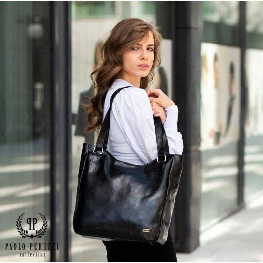 Opinie o Skórzana torebka damska czarna PAOLO PERUZZI GA317