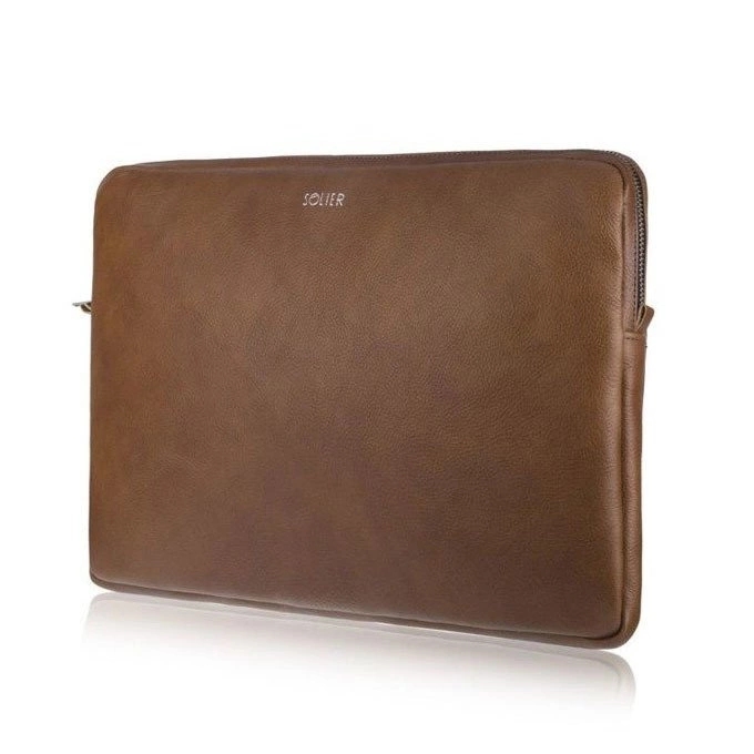 Skórzany pokrowiec pozwoli na transportowanie laptopa chroniąc go przed ewentualnym zabrudzeniem lub uszkodzeniem. Dzięki płaskiej budowie świetnie dopasuje się do torby lub plecaka. Łatwy w noszeniu, zapisany jest na zamek błyskawiczny YKK, który chroni laptop przed wysunięciem. Wewnątrz elegancka bawełniana podszewka w granatowe paski.