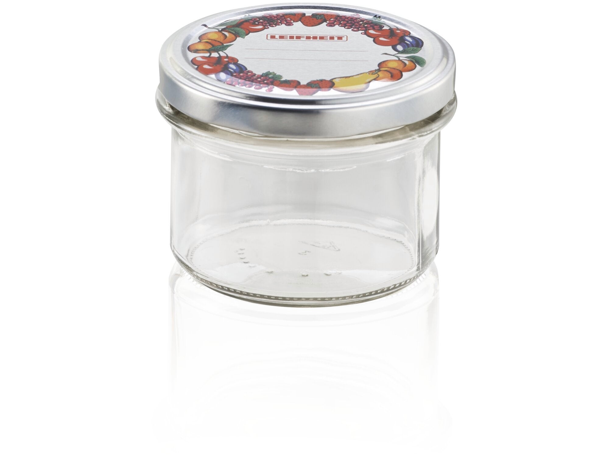 Dzięki słoikowi na przetwory marki Leifheit bardzo komfortowo i bezpiecznie przechowamy wszystkie przygotowane przez nas specjały. Słoik ma pojemność 235 ml i okrągły kształt. Wykonano go z wytrzymałego, przezroczystego szkła. Dołączona jest do niego metalowa nakrętka, która posiada miejsce na opis zawartości słoika. Ozdabia ją owocowy wzór. Nakrętka łatwo nachodzi na słoik i gwarantuje doskonałą szczelność, więc wszystkie przetwory długo pozostaną świeże. Prosta forma słoika umożliwia wygodne korzystanie z jego zawartości i zapobiega pozostawaniu w zakamarkach resztek żywności.
