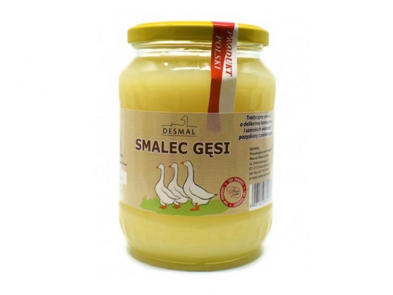 Produkt tradycyjny, czysty topiony tłuszcz gęsi .Smalec gęsi ze względu na wysoką zawartość (ponad 2/3) nienasyconych kwasów tłuszczowych zalicza się do zdrowych tłuszczów zwierzęcych. Przeważa tutaj kwas oleinowy (podobnie, jak w oliwie z oliwek), który obniża poziom złego cholesterolu (LDL), natomiast nie zmniejsza stężenia dobrego cholesterolu (HDL).