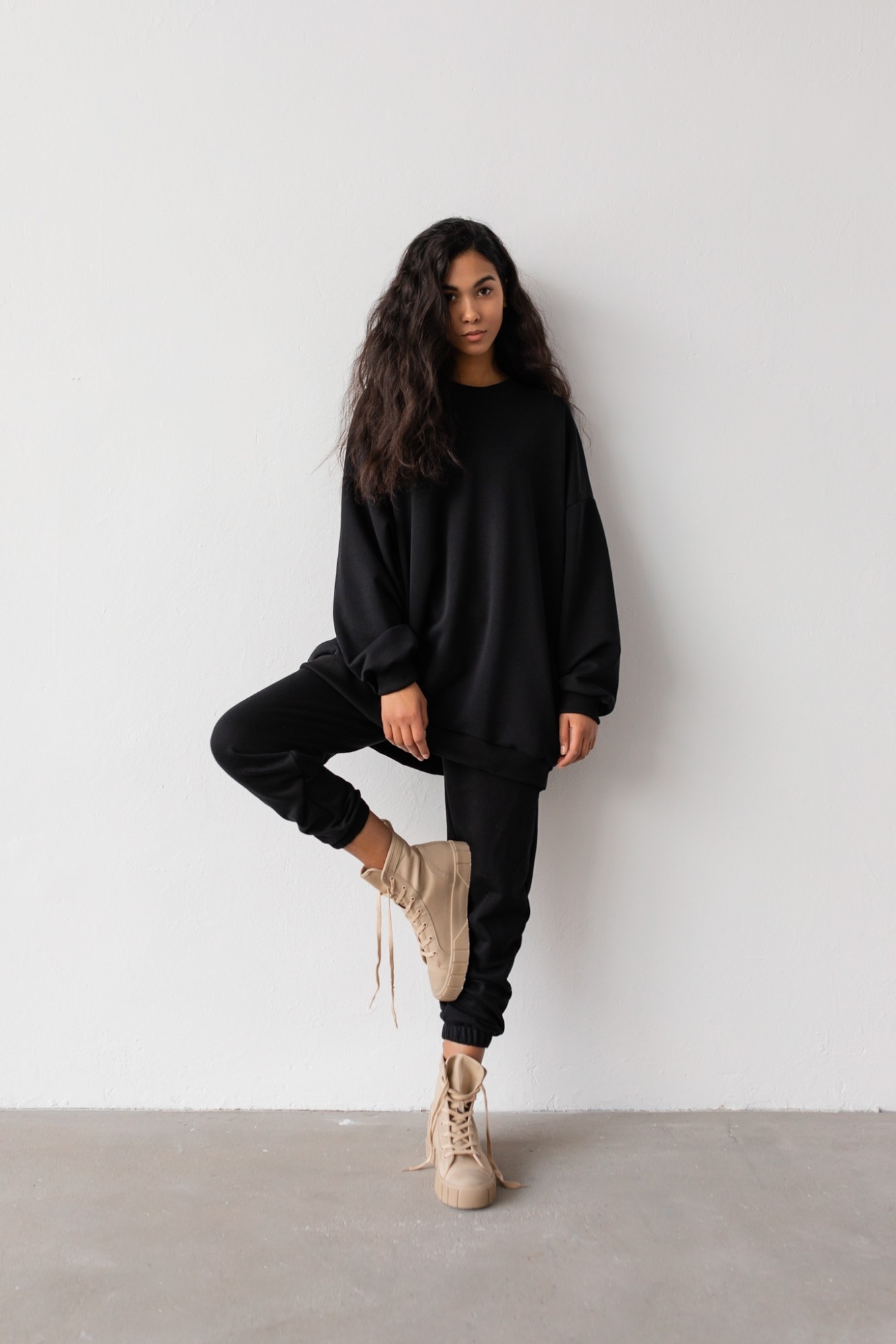 Joggery damskie wykonane z dzianiny dresowej w kolorze czarnym Spodnie o luźnym kroju, z wysokim stanem oraz charakterystycznym wykończeniem nogawek. Jeden z modeli, które pozwalają na tworzenie wygodnych i bardzo modnych w ostatnich sezonach stylówek. Kojarzone z miejskim luzem, świetnie sprawdzą się również w nieco bardziej wyszukanych zestawach - nawet w wersji elegant. Perfekcyjnie tuszują wszelkie niedoskonałości sylwetki i gwarantują maksymalny komfort podczas noszenia! Połączysz je zarówno ze zwykłym t-shirtem, jak i bluzą, czy dopasowanym topem. Przeznaczone dla wielbicielek ponadczasowej czerni! W połączeniu z bluzą Hush stworzą perfekcyjny, niebywale modny set! Dostępne w kilku wariantach kolorystycznych! Materiał:dzianina dresowa bez ocieplenia o gramaturze 280g; dodatkowo uszlachetniona poprzez enzymowanie zmiękczające materiał oraz silikonowanie, które utrwala efekt. Modelka ma 174 cm wzrostu i prezentuje rozmiar S Skład: 90% Bawełna, 10% Poliester PRODUKT POLSKI - Marsala Collection ZALECANA PIELĘGNACJA: