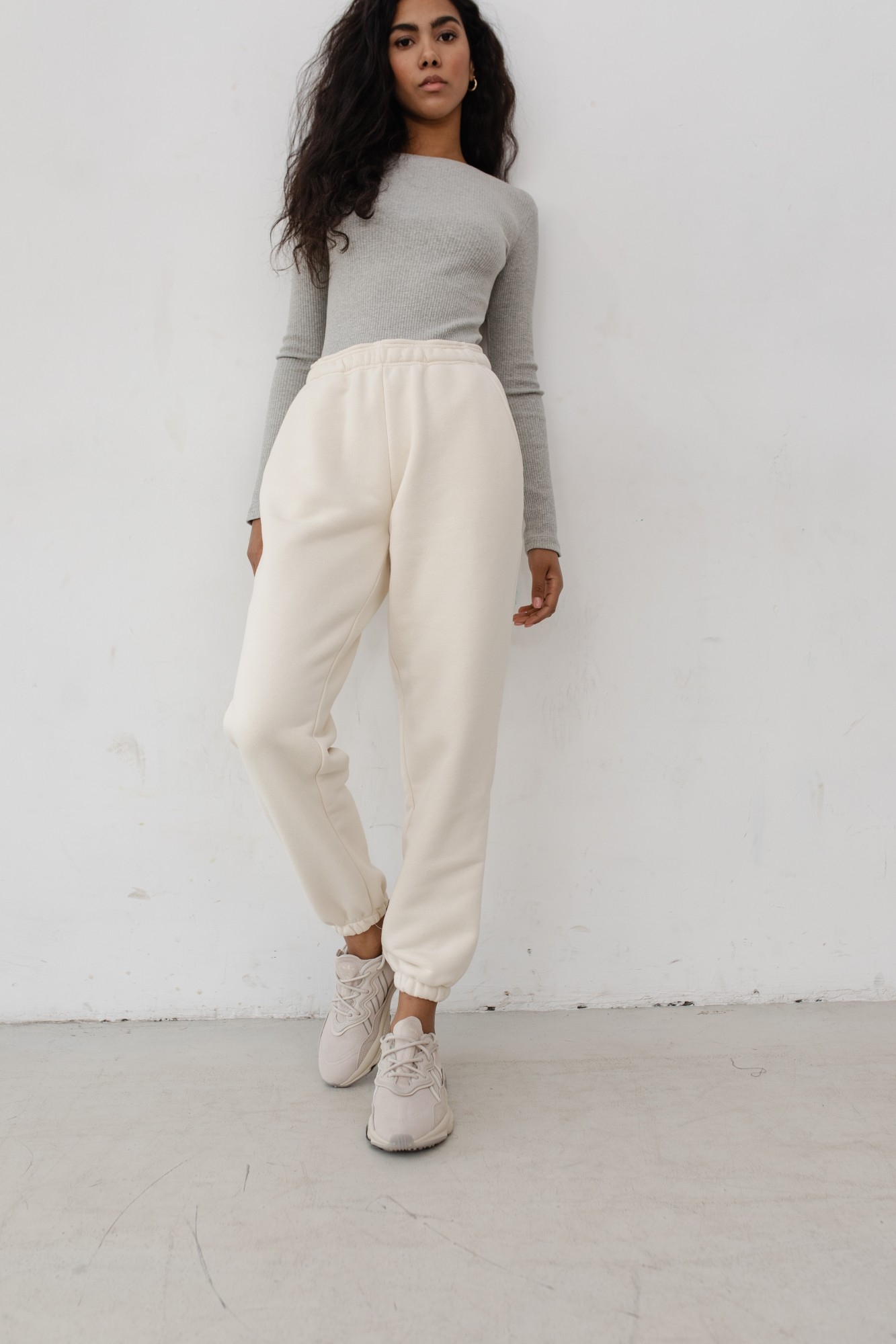 Joggery damskie wykonane z dzianiny dresowej w kolorze jasnego beżu Spodnie o luźnym kroju, z wysokim stanem oraz charakterystycznym wykończeniem nogawek. W pasie znajduje się guma. Przód został urozmaicony o dwie kieszenie. Kojarzone z miejskim luzem, świetnie sprawdzą się również w nieco bardziej wyszukanych zestawach - nawet w wersji elegant. Perfekcyjnie tuszują wszelkie niedoskonałości sylwetki i gwarantują maksymalny komfort podczas noszenia! Połączysz je zarówno ze zwykłym t-shirtem, jak i bluzą, czy dopasowanym topem. Dostępne w dwóch wariantach kolorystycznych! Modelka ma 174 cm wzrostu i prezentuje rozmiar S Skład: 90% Bawełna 10% Poliester PRODUKT POLSKI - Marsala Collection ZALECANA PIELĘGNACJA: