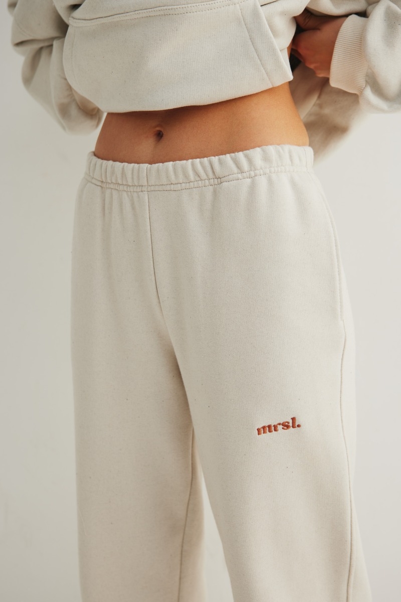 Joggery damskie wykonane z dzianiny w kolorze jasnobeżowym. Spodnie o luźnym kroju, oraz szerokimi nogawkami wykończonymi gumą. Na lewej nogawce minimalistyczny haft MRSL w kolorze dzianiny. Jeden z modeli, które pozwalają na tworzenie wygodnych i bardzo modnych w ostatnich sezonach stylówek. Kojarzone z miejskim luzem, świetnie sprawdzą się również w nieco bardziej wyszukanych zestawach. Perfekcyjnie tuszują wszelkie niedoskonałości sylwetki i gwarantują maksymalny komfort podczas noszenia! Dostępne rónież w innym kolorze. Skład: 80% Bawełna, 20% Poliester Gramatura dzianiny : 400g/ m²