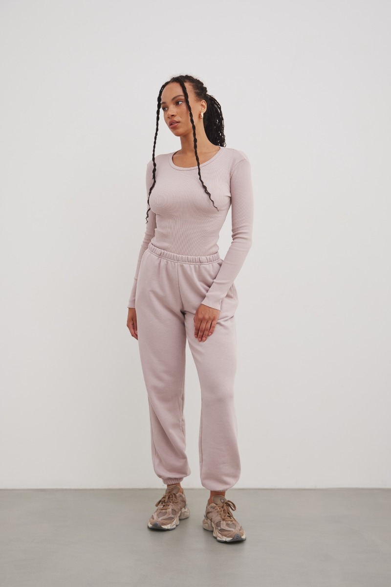 Joggery damskie wykonane z dzianiny w kolorze różowym. Spodnie o luźnym kroju, oraz szerokimi nogawkami wykończonymi gumą. Na lewej nogawce minimalistyczny haft MRSL w kolorze dzianiny. Jeden z modeli, które pozwalają na tworzenie wygodnych i bardzo modnych w ostatnich sezonach stylówek. Kojarzone z miejskim luzem, świetnie sprawdzą się również w nieco bardziej wyszukanych zestawach. Perfekcyjnie tuszują wszelkie niedoskonałości sylwetki i gwarantują maksymalny komfort podczas noszenia! Dostępne rónież w innym kolorze. Skład: 80% Bawełna, 20% Poliester Gramatura dzianiny : 320g/ m²