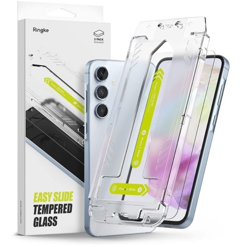 Ringke Easy Slide Tempered Glass 2-Pack Samsung Galaxy A35 5G Szkło kompatybilne z etui Rewelacyjne szkło hartowane marki Ringke. Dopasowane dla kompatybilności z większością etui i z każdą obudową firmy Ringke. Wysokiej jakości szkło ochroni wyświetlacz przed zarysowaniami, zabrudzeniem czy pęknięciami. Powłoka oleofobowa i hydrofobowa zapobiega pozostawianiu odcisków palców i smug, pomagając w utrzymaniu czystości ekranu. W opakowaniu znajdują się 2 sztuki szkła. *Przedmiotem sprzedaży jest samo szkło wraz z aplikatorem, pozostałe akcesoria widoczne na zdjęciach służą jedynie przedstawieniu funkcjonalności produktu. Wymiary szkła Podstawowym akcesorium do ochrony urządzenia mobilnego oprócz szkła jest etui. Aby upewnić się, że szkło będzie zgodne z etui należy pamiętać, że: wymiary szkła muszą być mniejsze od wymiarów wewnętrznych pokrowca futerał nie może nachodzić na szybkę Wymiary szkła: 15,75 x 7,35 cm (długość x szerokość) Krystalicznie przezroczyste Zachwycające frezowane krawędzie 2.5D, przyjemne w dotyku, oraz dodatkowa warstwa oleofobowa sprawiają, że korzystanie z ekranu staje się czystą przyjemnością. Oferując idealną przejrzystość, szkło nie wpływa negatywnie na funkcjonalność dotyku, co gwarantuje płynne i precyzyjne działanie Twojego Galaxy S24. Wyróżniającą cechą tego produktu jest specjalna powłoka oleofobowa, eliminująca uciążliwe odciski palców i zanieczyszczenia, co pozwala zachować ekran w nieskazitelnym stanie przez długi czas. Doskonale dopasowane Szkło pokrywa maksymalnie jak największą część wyświetlacza z małym marginesem dla dopasowania z etui. Posiada zeszlifowane gładkie krawędzie 2,5D doskonale współgrając z wyświetlaczem urządzenia. Zachowuje wysoką czułość ekranu, a w razie potrzeby czułość tą można zwiększyć w opcjach urządzenia. Łatwa aplikacja Easy Slide to nie tylko ochrona przed zarysowaniami, ale także tarcza chroniąca przed uderzeniami wynikającymi z przypadkowego upadku telefonu. Szkło jest łatwe w montażu, w komplecie znajdziesz narzędzie montażowe Easy Slide, dzięki któremu aplikacja szkła staje się łatwiejsza i bardziej precyzyjna, gwarantując bezproblemową instalację.