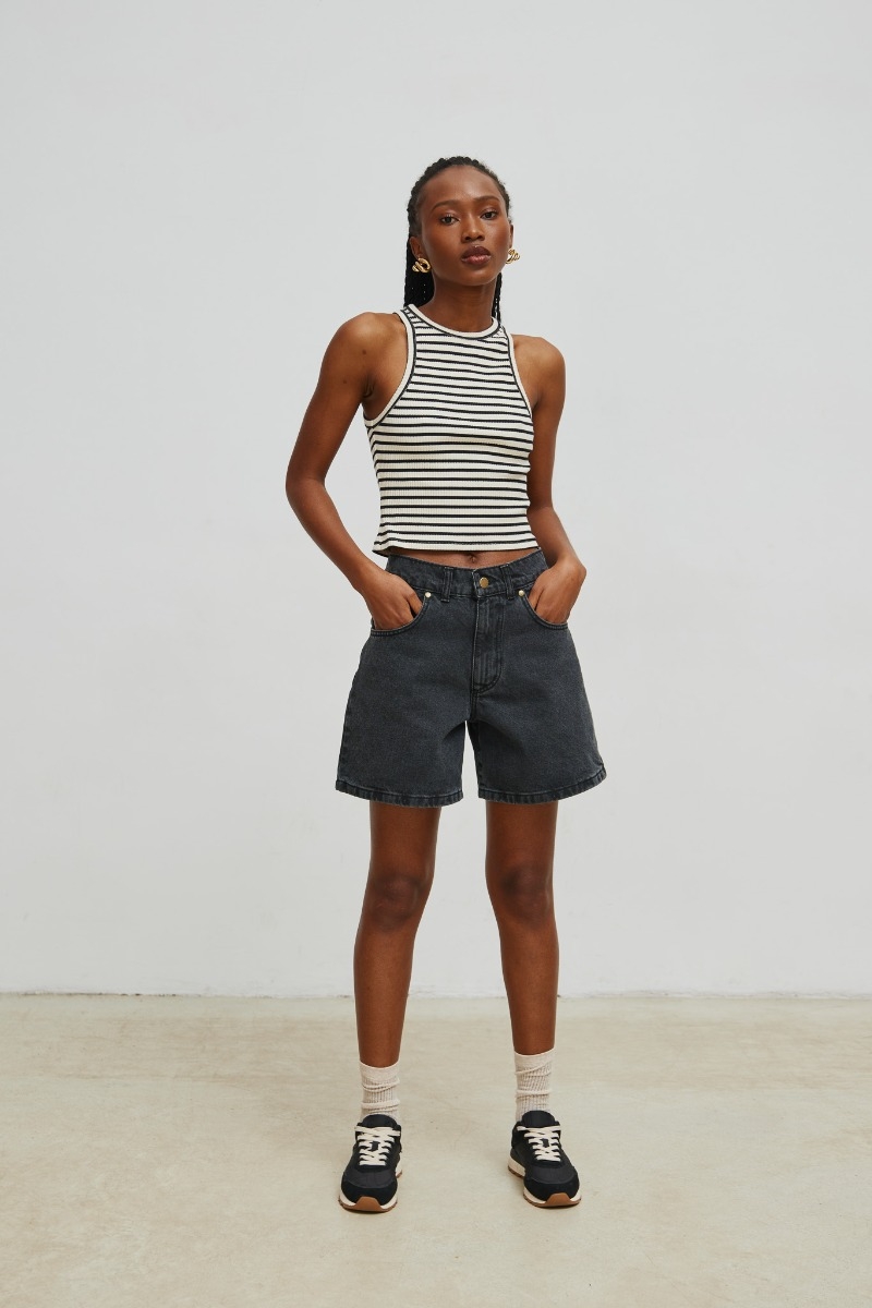 Gotowe na nadchodzący sezon wiosna/lato? Szorty jeansowe w czarnym kolorze są idealnym wyborem! Lekko rozszerzane nogawki nadadzą Ci wygodę i swobodę ruchów, a dodatkowo dwie kieszenie z haftem w kształcie litery M dodadzą im charakteru. Zapinane na zamek i guzik, te szorty sprawdzą się doskonale na letnie dni. Idealne na spacer, spotkanie ze znajomymi czy piknik na plaży. Nie wahaj się i dodaj je do swojej wiosennej garderoby! Dostępne równierz w innch kolorach. Tworzą komplet z kurtką RUBI w tym samym kolorze . Skład : 100% Cotton Denim ZALECANA PIELEGNACJA : Prać na lewej stronie.