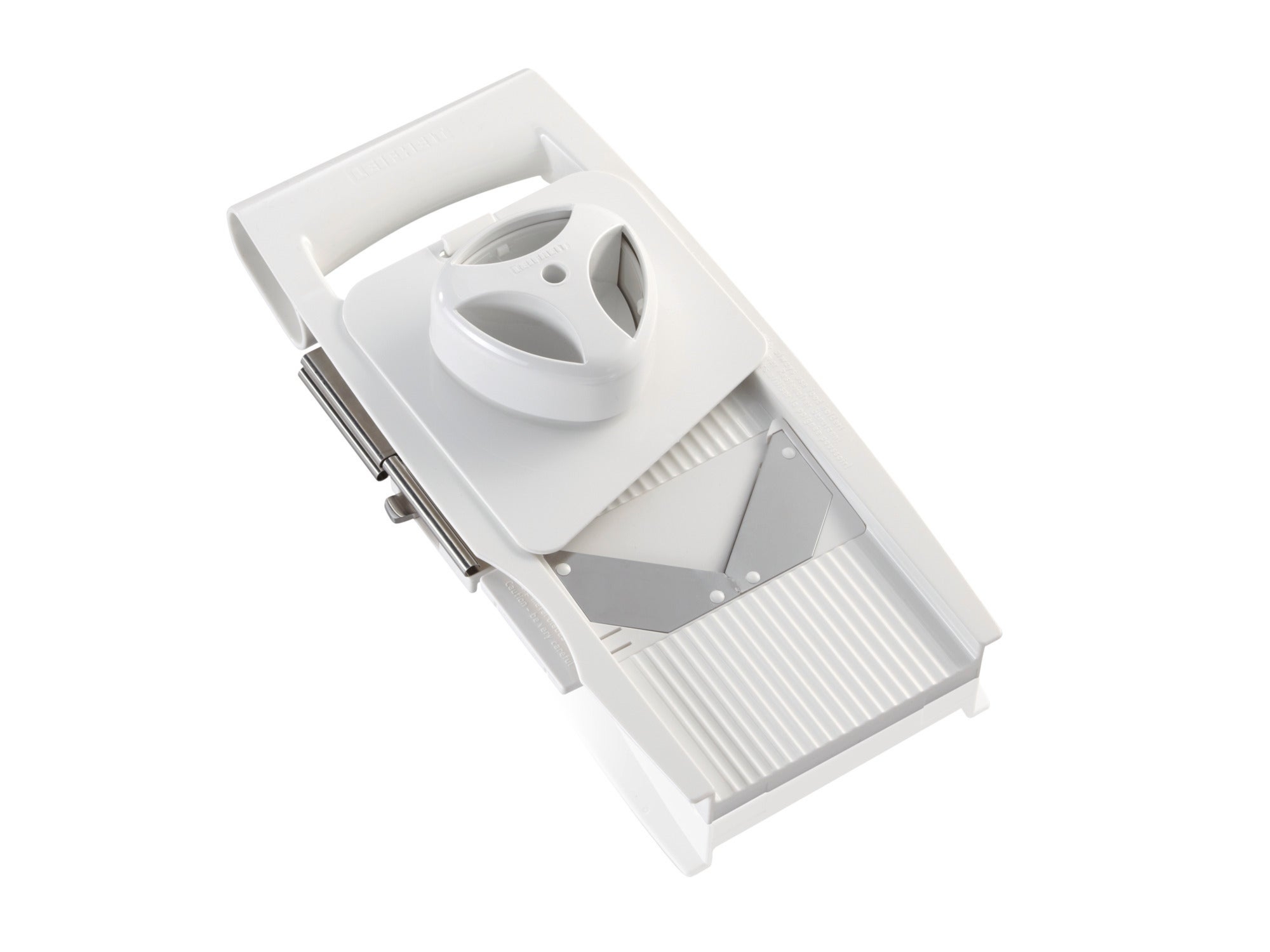 Tarka uniwersalna 4+1 marki Leifheit to niezwykle funkcjonalne akcesorium, które nie tylko umożliwia szybkie i dokładne rozdrobnienie produktów, ale także oszczędza miejsce. Jej obudowę wykonano z wytrzymałego tworzywa sztucznego w kolorze białym, natomiast ostrza powstały z nierdzewnej stali szlachetnej. Nożyki i oczka tarki są bardzo wytrzymałe i ostre. Nie zostaną stępione nawet po wielokrotnym użytkowaniu. Tarka posiada cztery wymienne wkłady, które umożliwiają krojenie: drobne, grube, ozdobne oraz na plasterki. Grubość szatkowania można regulować. Dodatkowo, zawiera specjalne ostrze typu V, które przeznaczone jest do delikatnych produktów, jak np. pomidory.