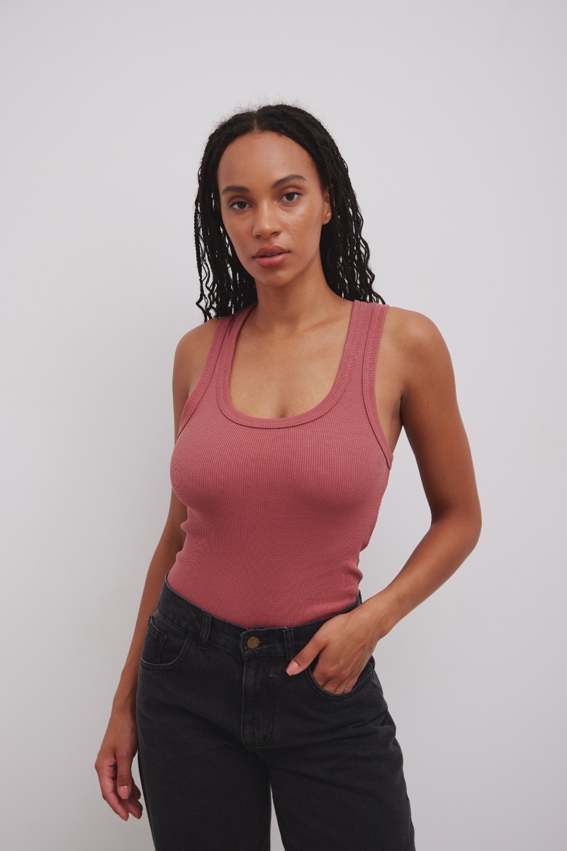 Top wykonany z elastycznego prążka w kolorze bordowym. Fason posiada półokrągły dekolt oraz średniej szerokości ramiączka które odsłaniają i pięknie eksponują kobiece ramiona . Niezwykle elastyczny, miły w dotyku materiał. Wykorzystasz ją zarówno samodzielnie podczas letnich upałów, jak i w połączeniu z ramoneską, swetrem, marynarką czy bluzą w sezonie wiosennym, czy jesienno-zimowym. Dostepny również w innych kolorach . Skład: 95% Bawełna , 5% Elastan ZALECANA PIELĘGNACJA: