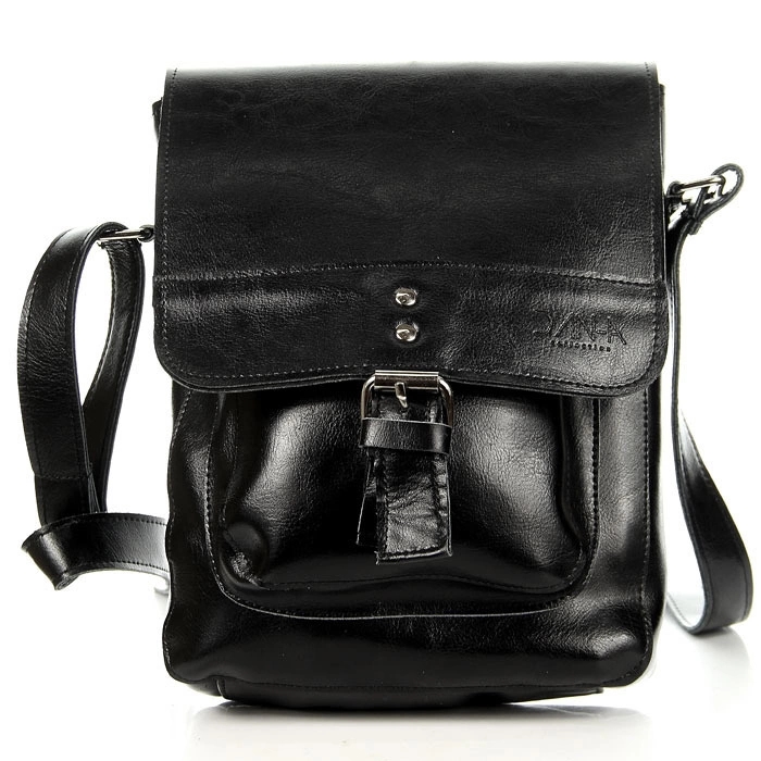 Skórzana torba raportówka w kolorze czarnym, renomowanego polskiego producenta, marki DAN-A. Całość zapinana na zamek, dodatkowo klapa zapinana na zatrzask magnetyczny. Wymiary 26 x 19 x 5 cm, pas nośny o maks. długości 155 cm.