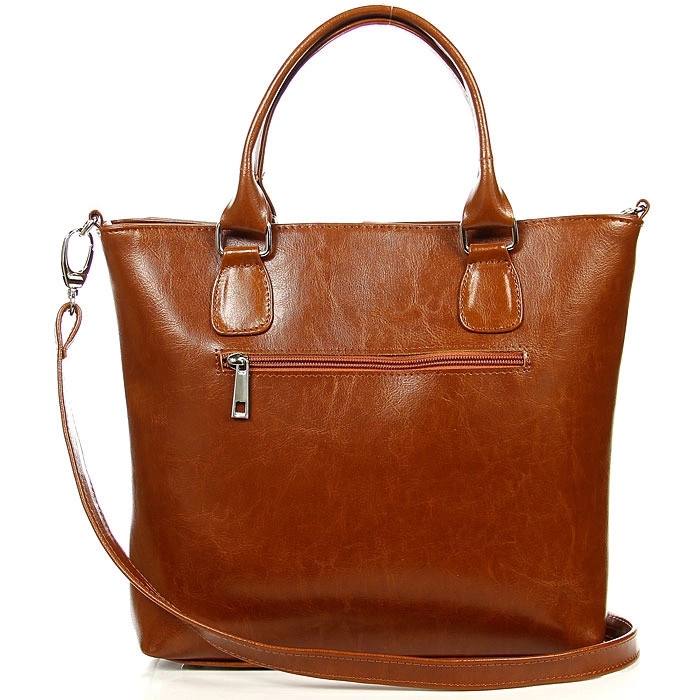 Torebka skórzana damska kuferek, w kolorze camel, renomowanego polskiego producenta, marki DAN-A. Wymiary 27 x 27,5 x 8 cm. Posiada regulowany pas nośny o maks. dl. 130 cm.