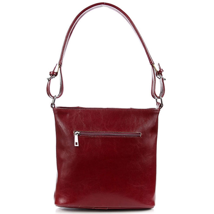 Skórzana torebka damska w kolorze bordowym, renomowanego polskiego producenta, marki DAN-A. Wzór stworzony dla kobiety eleganckiej, pewnej swojego stylu. wymiary 26 x 26 x 9 cm